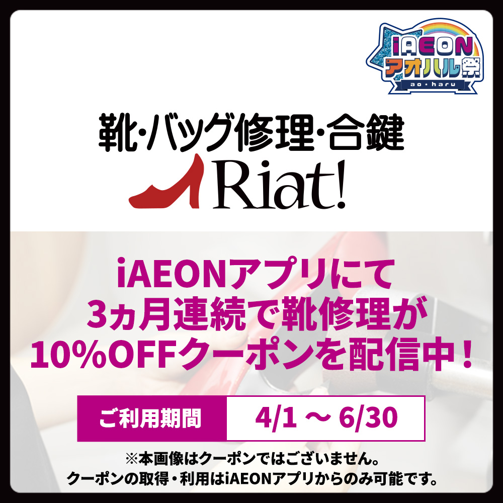 【iAEONアオハル祭!】靴修理がお得になるクーポンプレゼント!