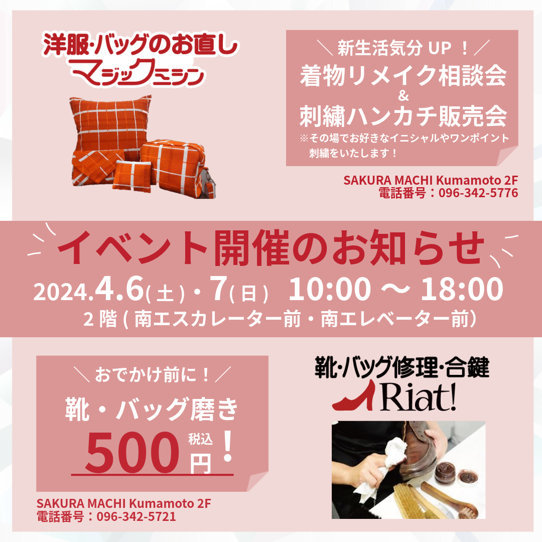 上記期間中、靴磨き&着物リメイクの相談会を実施いたします!