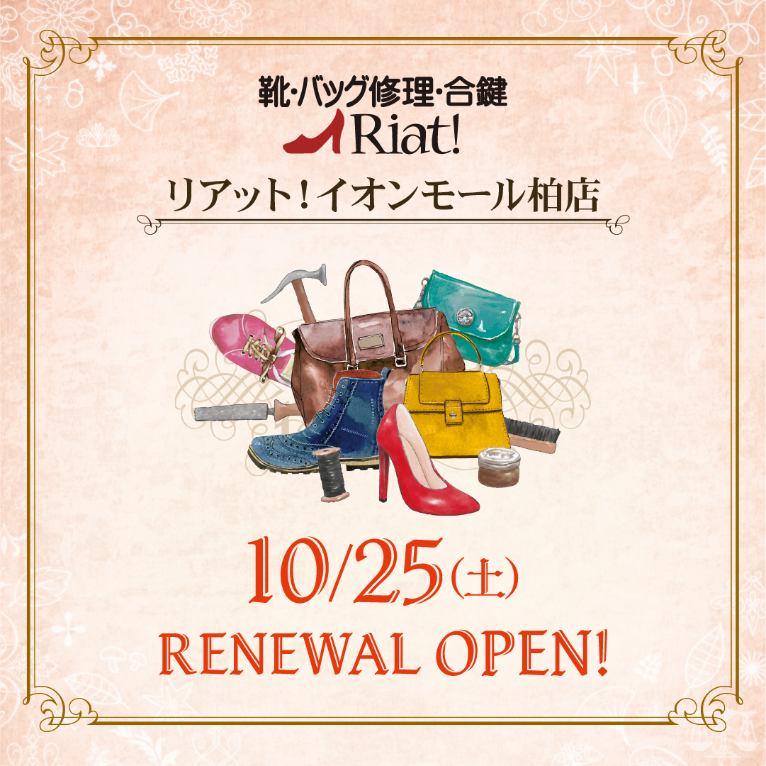 リアット!イオンモール柏店リニューアルオープン!(2025年10月25日) - 靴修理のリアット!|靴・バッグの修理、クレンジング&ケア