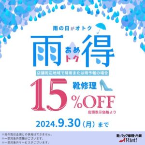 雨の日は靴修理がオトク!雨得キャンペーン実施!(店舗限定)