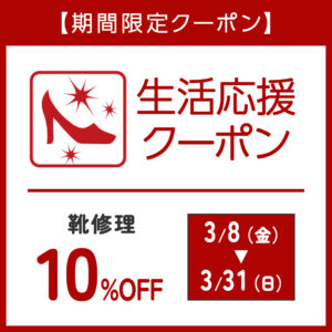 【公式LINE】靴修理が10%OFFクーポンを期間限定で配布中