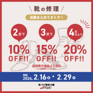 【公式LINE】靴修理が最大20%OFFクーポンを期間限定で配布中